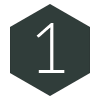 A dark green hexagonal shape with a white border featuring the number 1 in the center. – a room in the garden