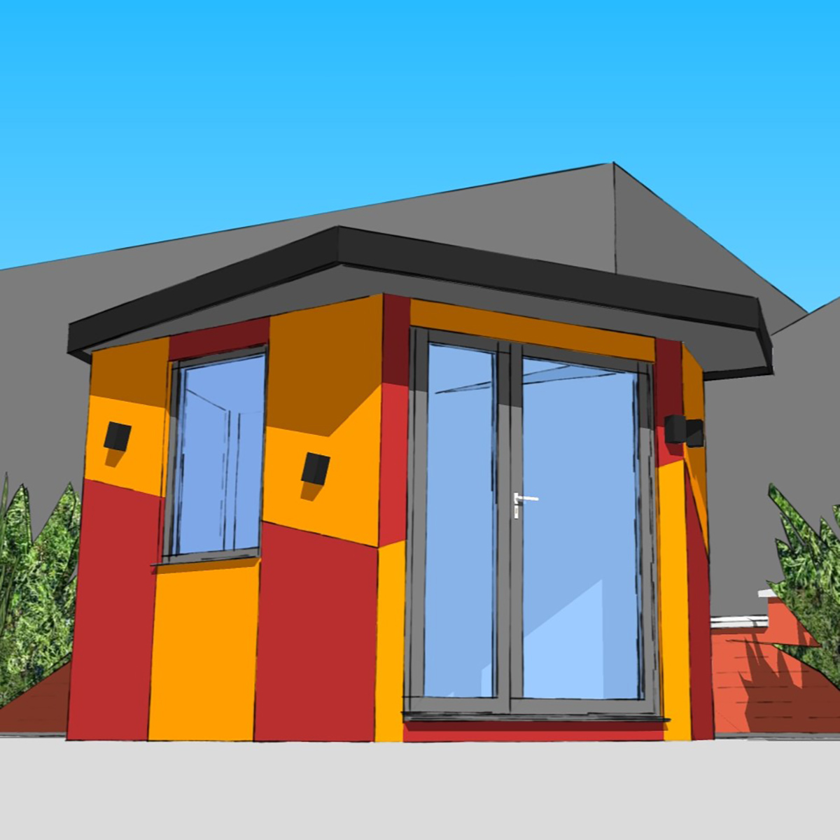 Colourful garden art studio visualisation